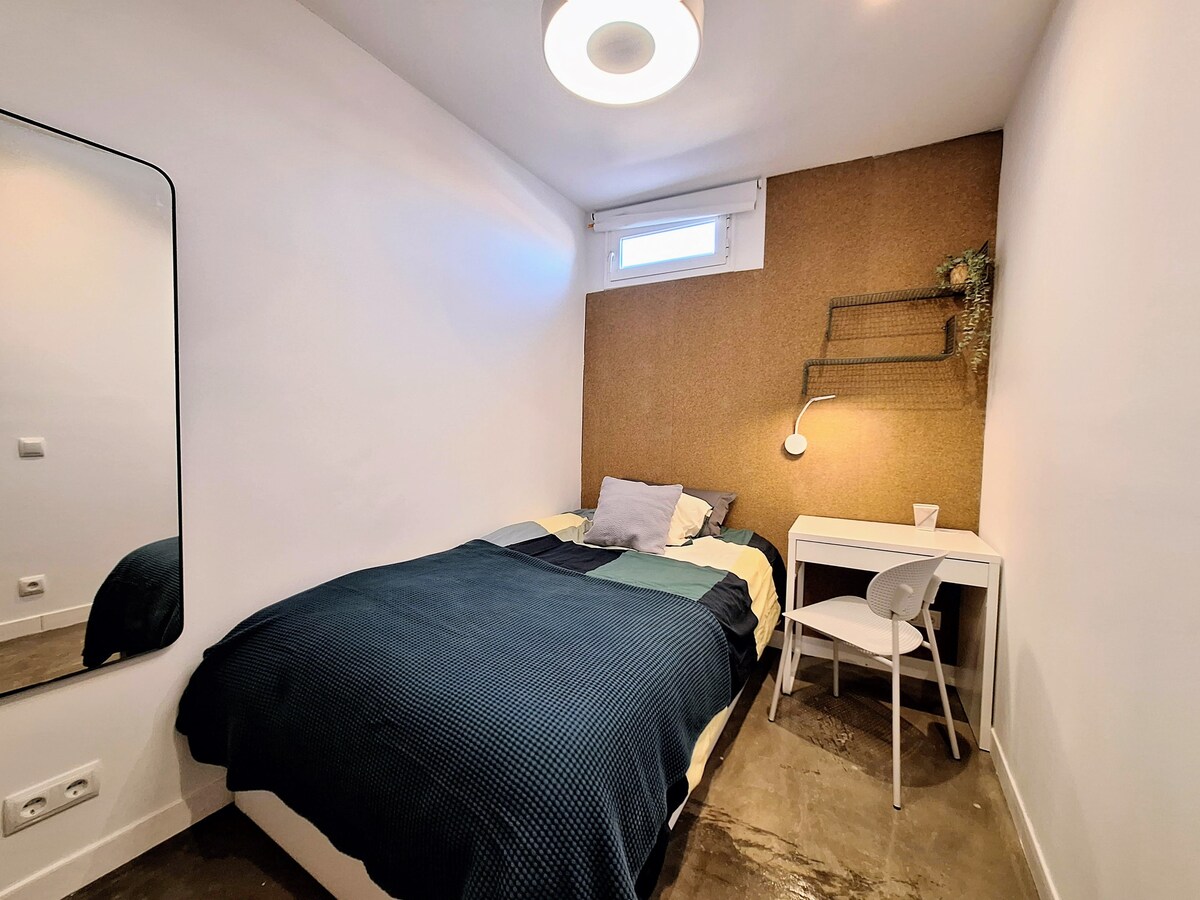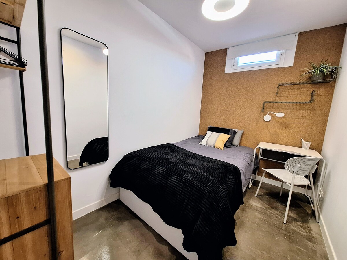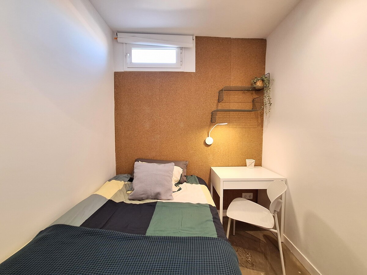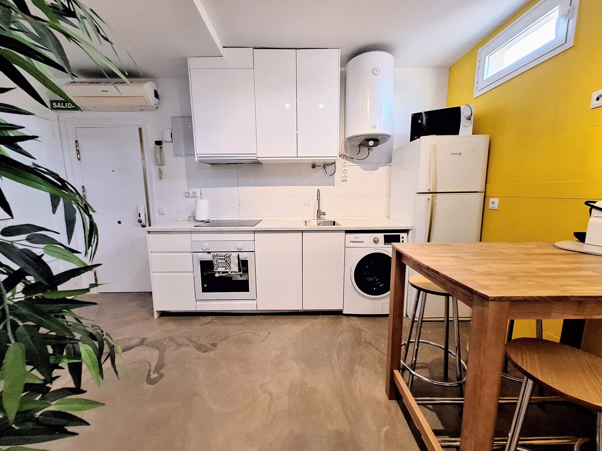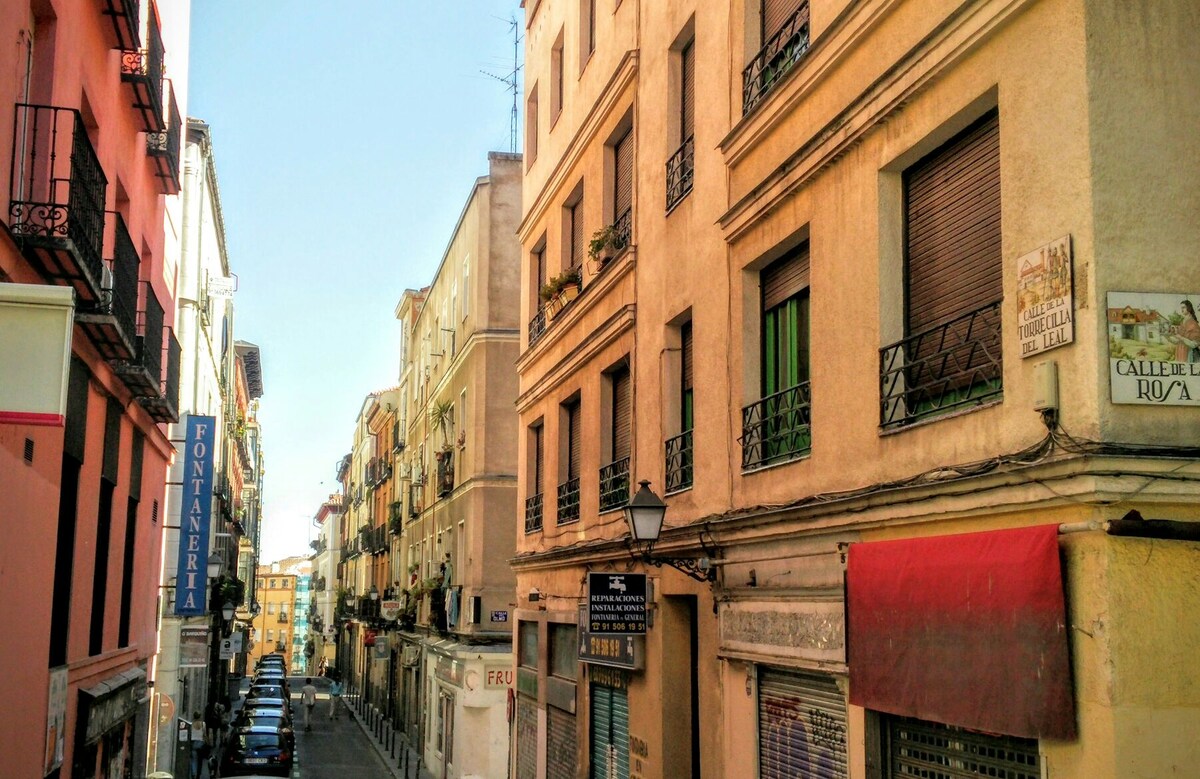 Located right in the center, in the historical district. 5 minutes away walking to Puerta del Sol, Plaza Mayor, Prado Museum... Well equipped, spacious and silent. A/C and Wifi.\nIdeal for international students and workers.\nAvailable only for monthly rental, please ask for conditions before any booking.\nBookings with LemonAndOtherStories\n\nThe space\n- Huge kitchen, fully equipped: toaster, coffee machine, microwave, kettle, fridge, washing machine, iron.\n- 1 full bathroom, hairdryer. \n- TV, WIFI high speed.\n- Bedroom 1 with bed 150x190cm\n- Bedrooms 2 and 3 with new high quality mattress 100x200cm\n\nIt is an old XIX century building that does not have elevator. The apartment is on the 5th floor and is totally silent.\n\nOther things to note\nIt\'s on the 5th floor with no elevator... no Gym needed!\n\nRegistration Details\nSpain - National registration number\nESFCNT00002811800041474400000000000000000000000000003