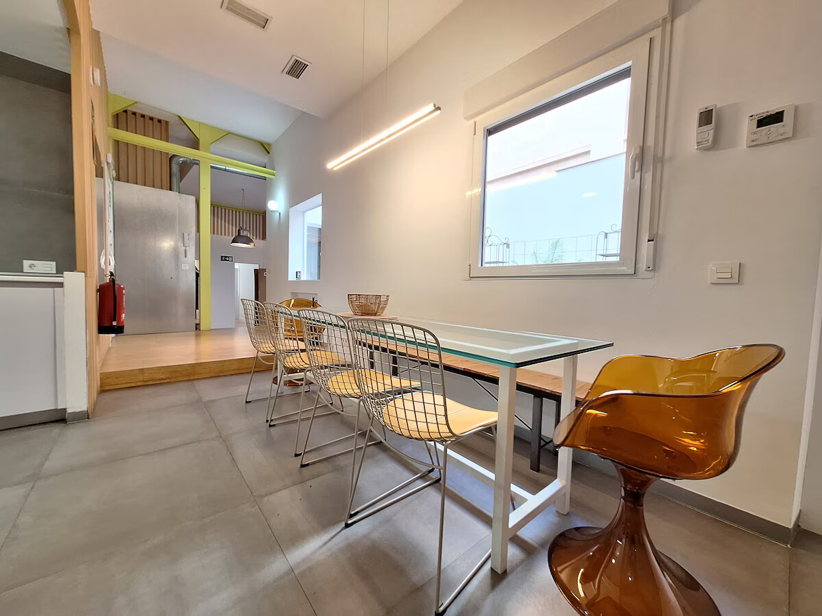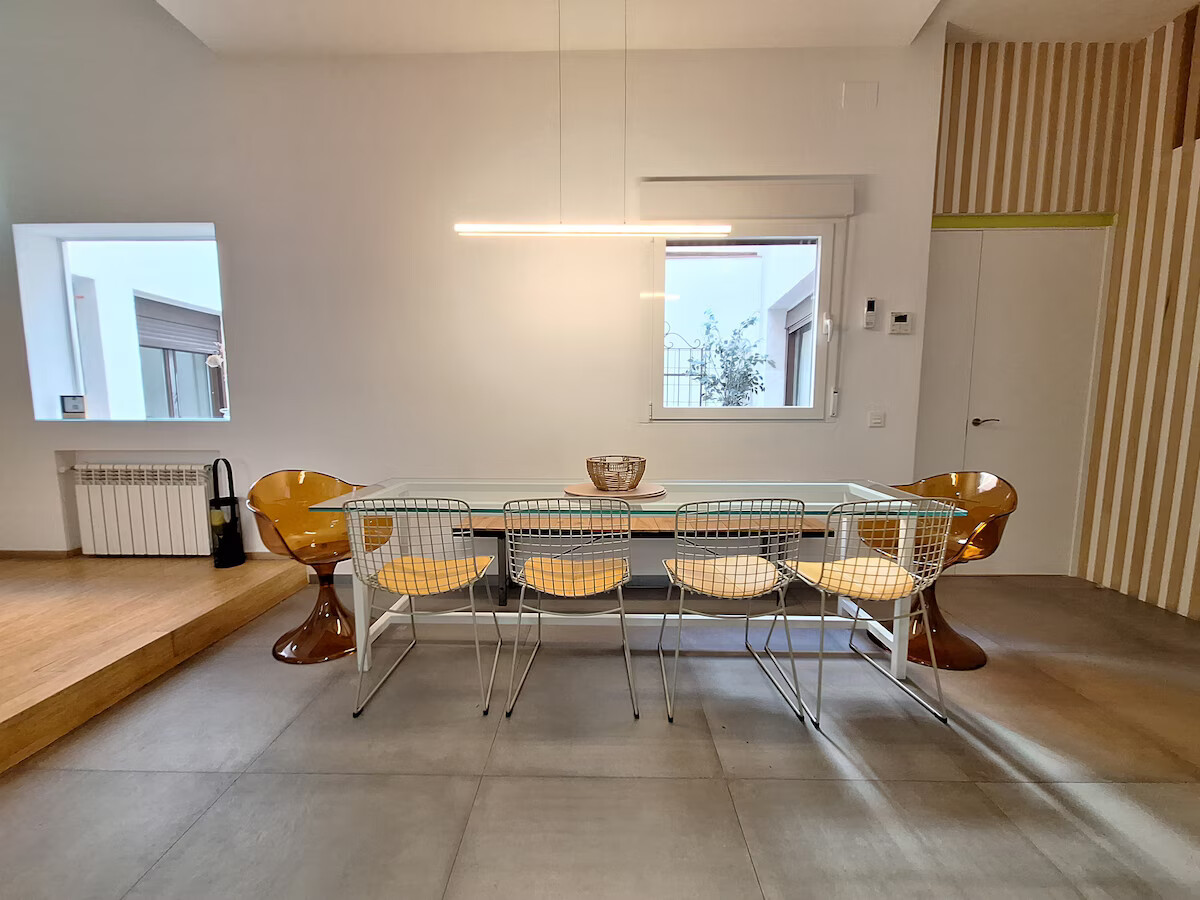 El apartamento está centrado alrededor de un patio interior, que inunda el espacio con luz natural durante todo el día. Está ubicado en la planta baja, lo que elimina la necesidad de un ascensor para el acceso.