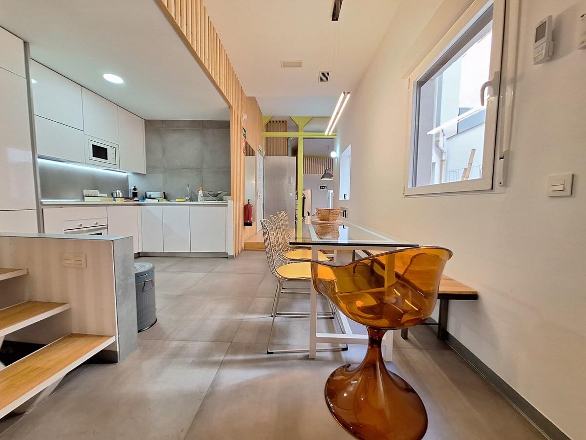 3 habitaciones dobles + 2 habitaciones dobles en altillo (8 camas, 4 baños). Ideal para familias o grupos de hasta 10 personas.